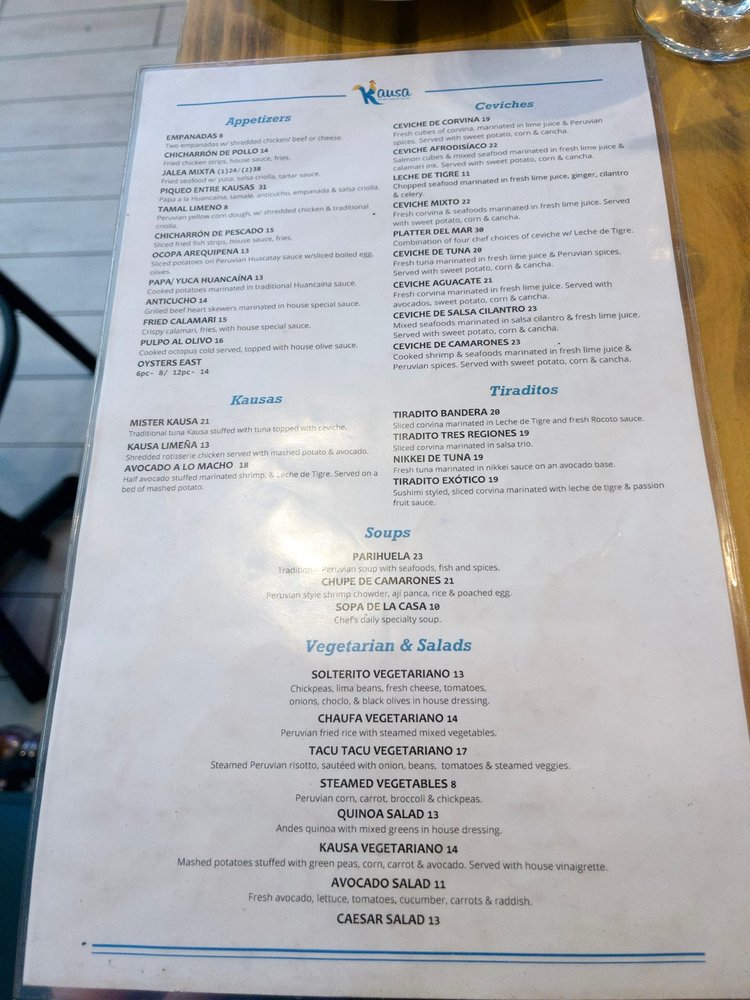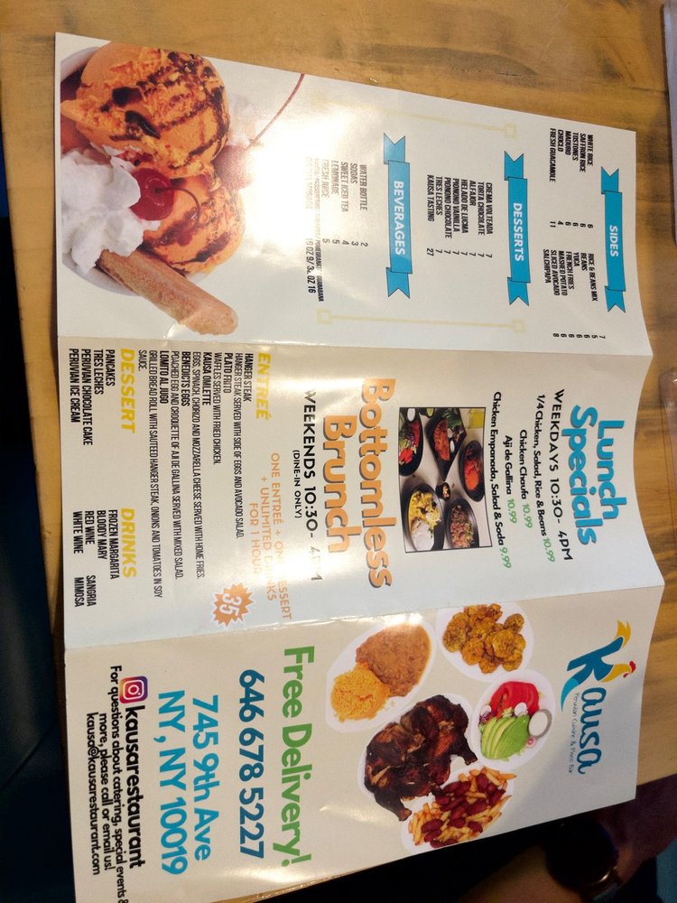 Kausa, a Peruvian restaurant located in New York City, offers a diverse menu featuring appetizers like empanadas, tamal Limeno, and anticucho. Their ceviche selection includes options like ceviche de corvina and ceviche mixto, all served with traditional Peruvian spices. The beverage menu offers a variety of options ranging from fresh juice to sangria. Customers have praised the restaurant for its vibrant atmosphere and flavorful dishes. Reviews highlight the must-try items like the ceviche de corvina, tostones, and rotisserie chicken. The portions are generous, and the service is quick and friendly. Overall, Kausa provides a memorable dining experience with authentic Peruvian cuisine and excellent value for money.